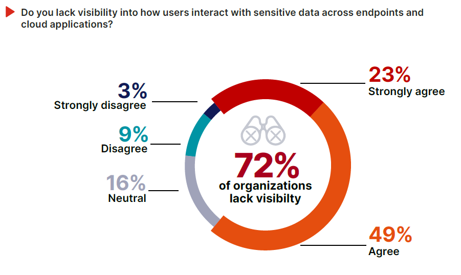 ۷۲٪ از سازمانها میگویند نمیتوانند ببینند کاربران چگونه با داده حساس در endpointها، سرویسهای ابری یا پلتفرمهای SaaS تعامل دارند.