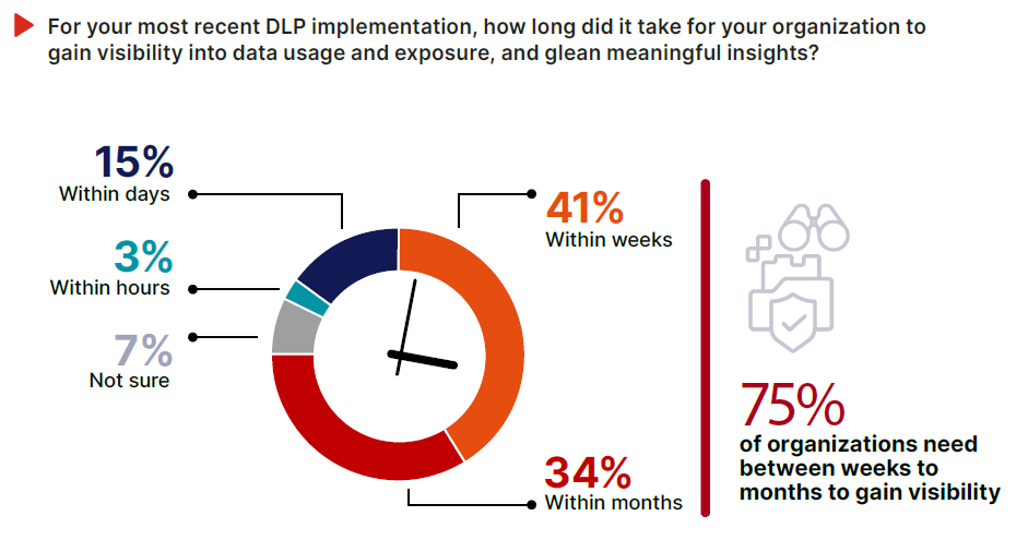 ۷۵٪ از سازمانها هفتهها یا ماهها منتظر میمانند تا از ابزارهای DLP بینش بهدست آورند.